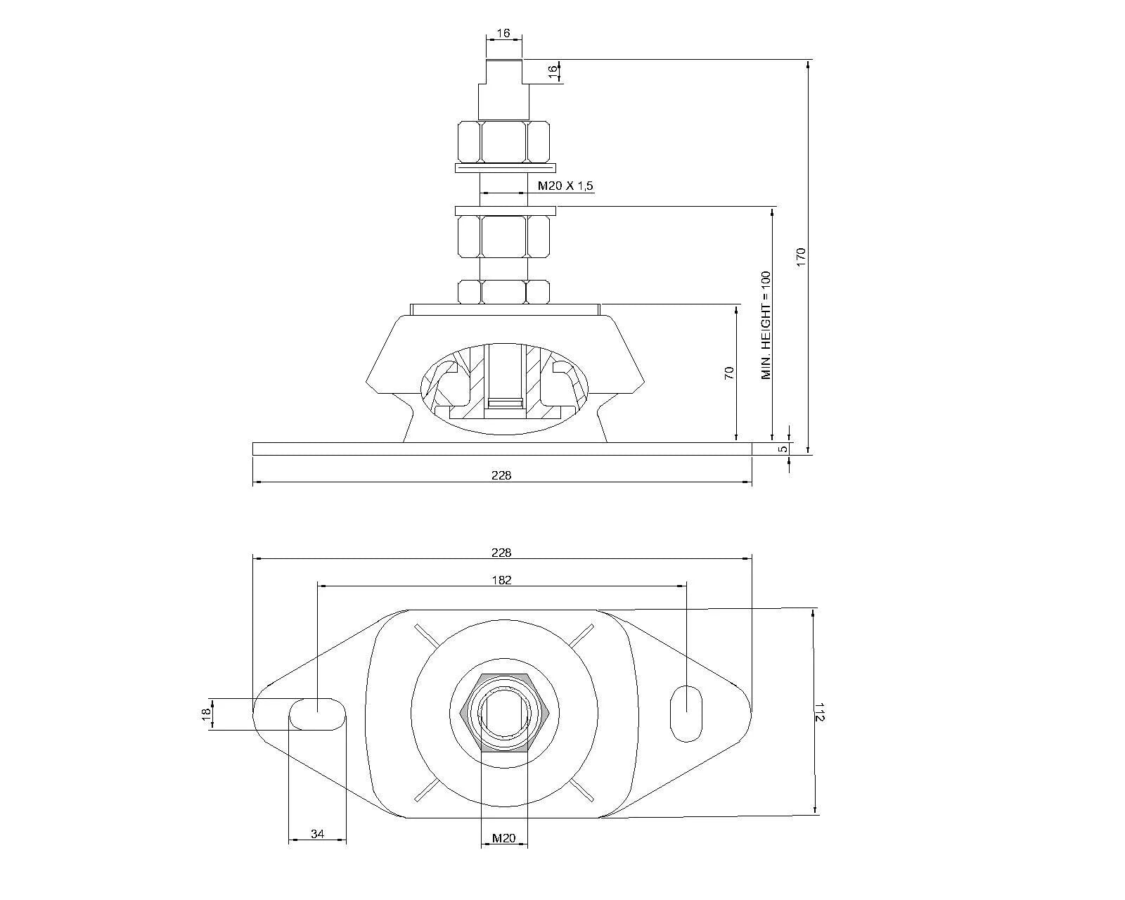 Flexible Motorhalterung für Schiffe 500KG, 20mm Bolzen, Volvo Penta, MAN, Cummins, CAT